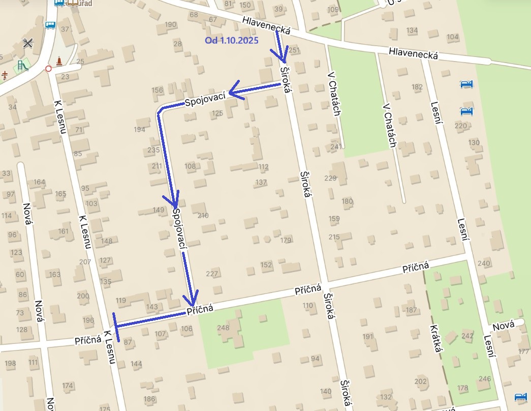 Od středy 8. 10. do soboty 11. 10. 2025 budou prováděny přípravné práce vjezdů pro asfaltování. Rozsah od ulice Na Průhonu po obecní úřad a nově vybudovanou autobusovou zastávku podél č. p. 3. Asfaltování bude probíhat v pondělí 13. 10 a úterý 14. 10. 2025.