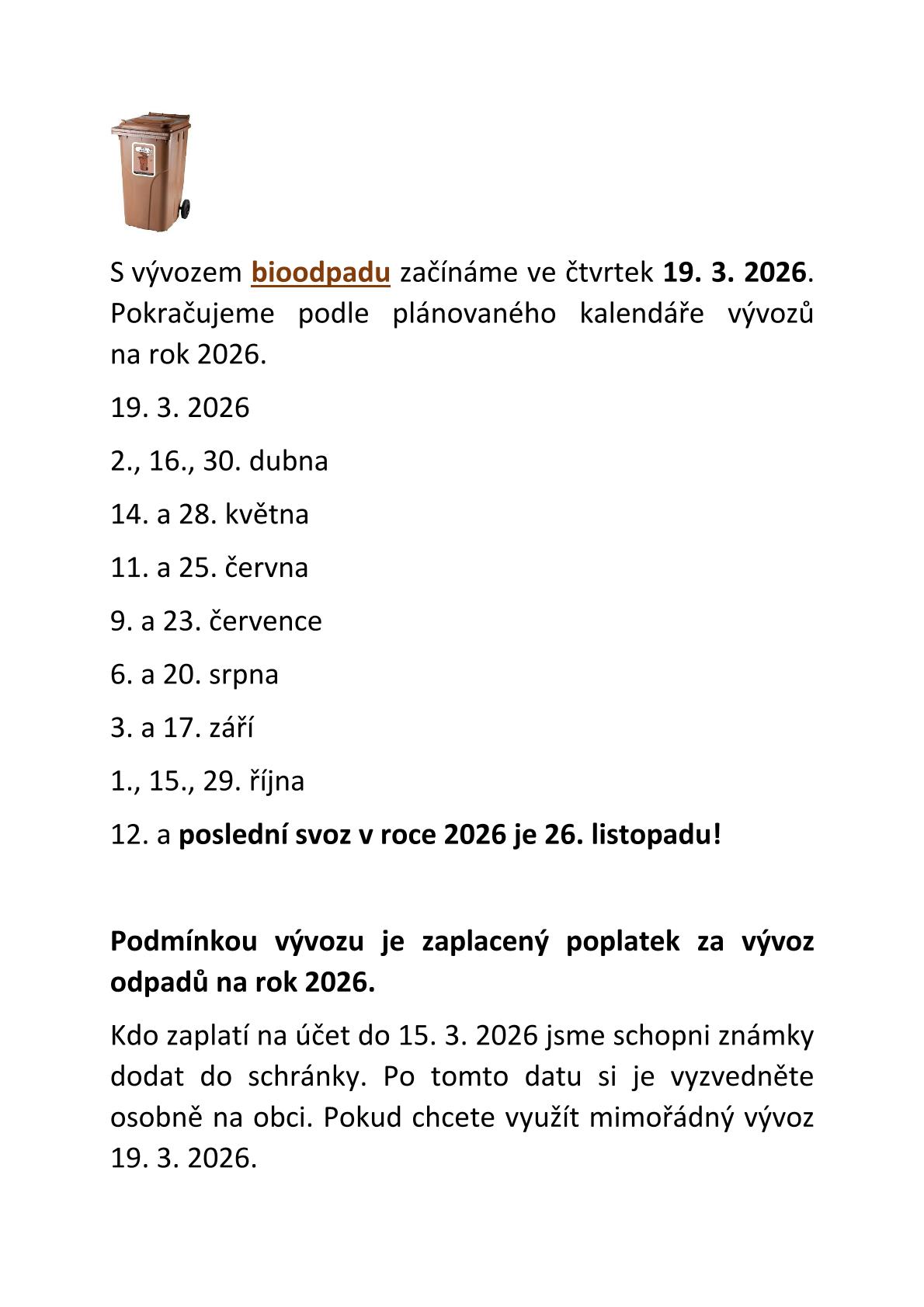 Vývoz bioodpadu začíná již 19. 3. 2026